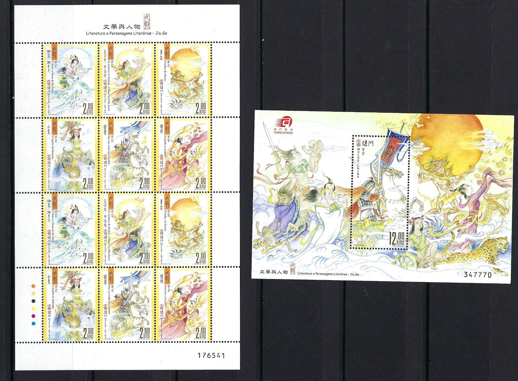 澳門 2015 文學與人物 – 九歌 郵票 小型張 + 小版