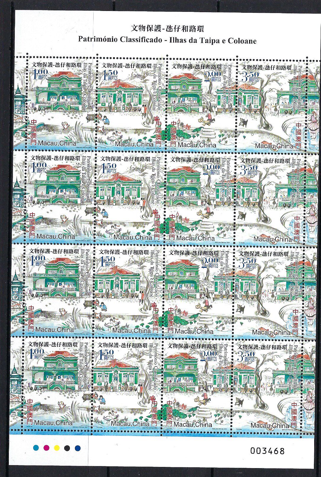 澳門 2003年 文物保護-氹仔和路環 郵票 小版張