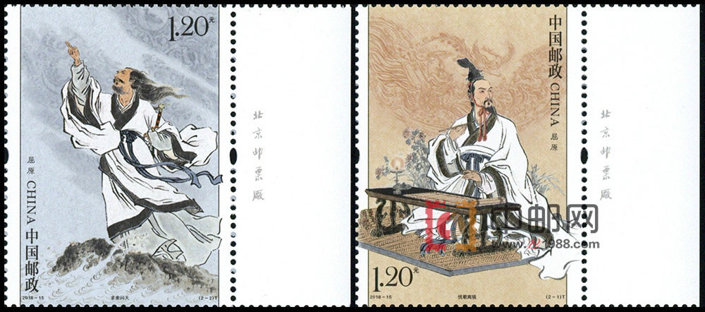 中国邮政定于2018年6月18日发行《屈原》特种邮票1套2枚,小型张1枚,另:同时发行《屈原》特种邮票本册1本。编号:BPC-16。