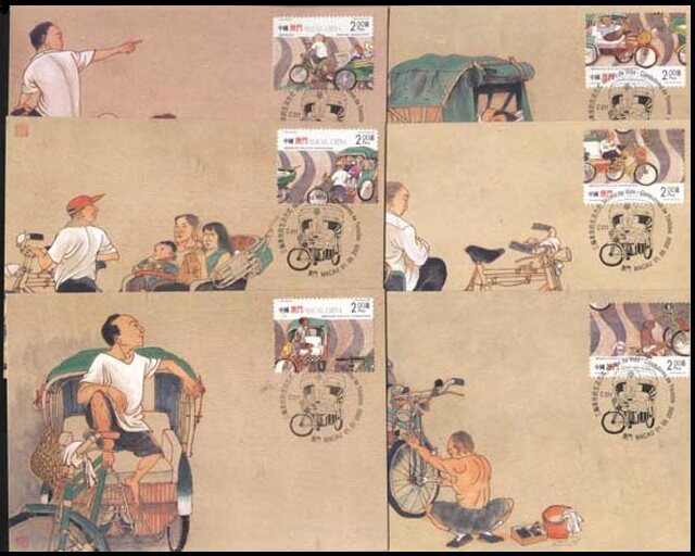 中国澳门2000年BPL8-13三轮车夫生活方式官方极限明信片原图卡6全