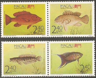 1990澳门邮票,鱼类,4全(双联)。