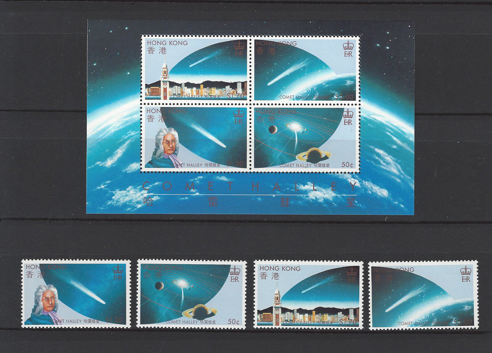 香港 1986年 哈雷彗星 郵票 + 小全張