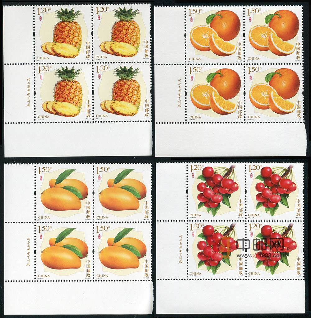 这是继2014年发行《水果(一)》特种邮票,表现苹果、桃、石榴、金桔,2016年发行《水果(二)》特种邮票,表现杏、葡萄、西瓜、荔枝之后,2018年又将发行《水果(三)》特种邮票,表现菠萝、樱桃、芒果和橙子这四种水果。