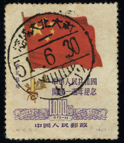 BFC050 纪6 中华人民共和国建国一周年纪念(东北贴用原版票)(5-1)单枚票