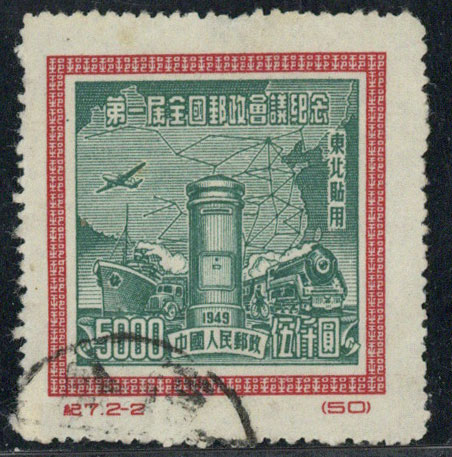 BFC062 纪7 第一届全国邮政会议纪念(东北贴用原版票)(2-2)单枚票