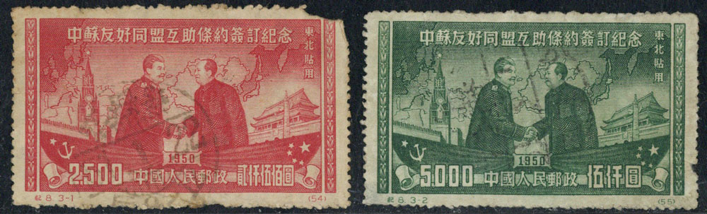 BFC071 纪8 中苏友好同盟互助条约签订纪念(东北贴用原版票)(3-1)(3-2)单枚票