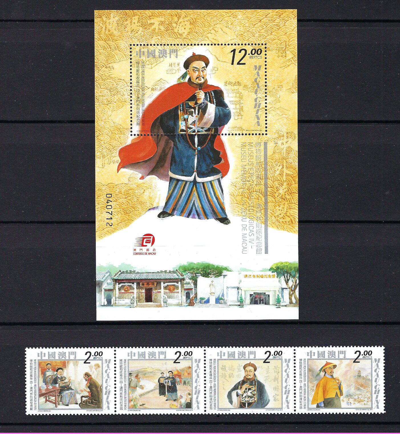 澳門 2014 年 博物館和收藏品 四 林則徐紀念館 郵票 + 小型張