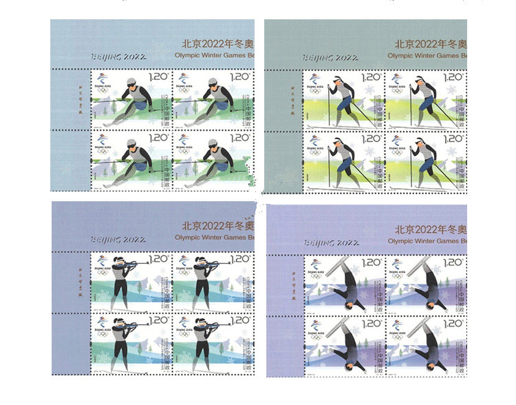 商品详情:中国邮政定于2018年11月16日发行《北京2022年冬奥会——雪上运动》纪念邮票1套4枚,邮票图案名称分别为:越野滑雪、高山滑雪、冬季两项、自由式滑雪,全套邮票面值为4.80元。