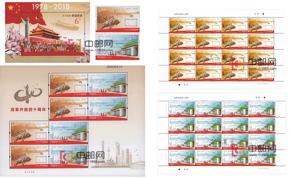 ZH-102 改革开放四十周年 邮票、小型张、小版、大版合售