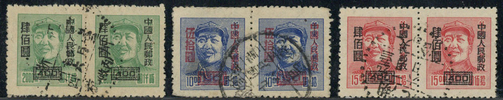BFR154 改6 “华东区三一版毛泽东像”邮票加字改值成套信销票(双连)