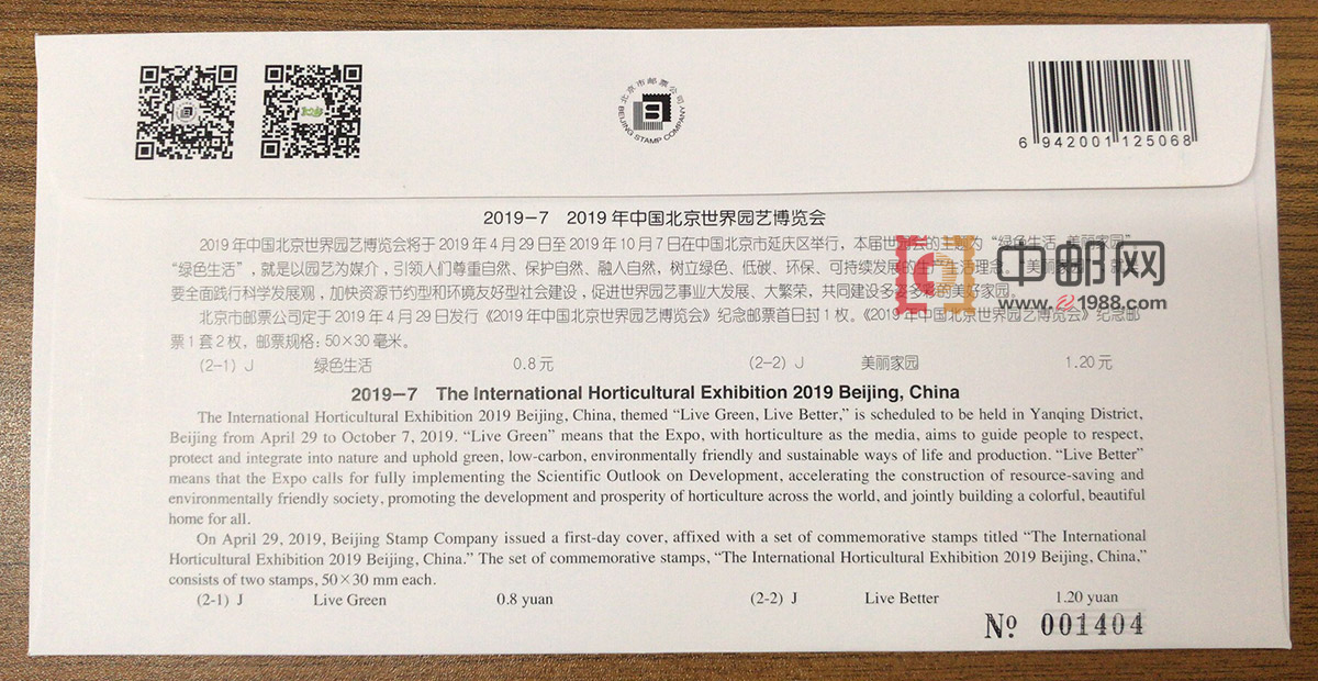 S分 《2019-7 2019年中国北京世界园艺博览会》北京市分公司首日封