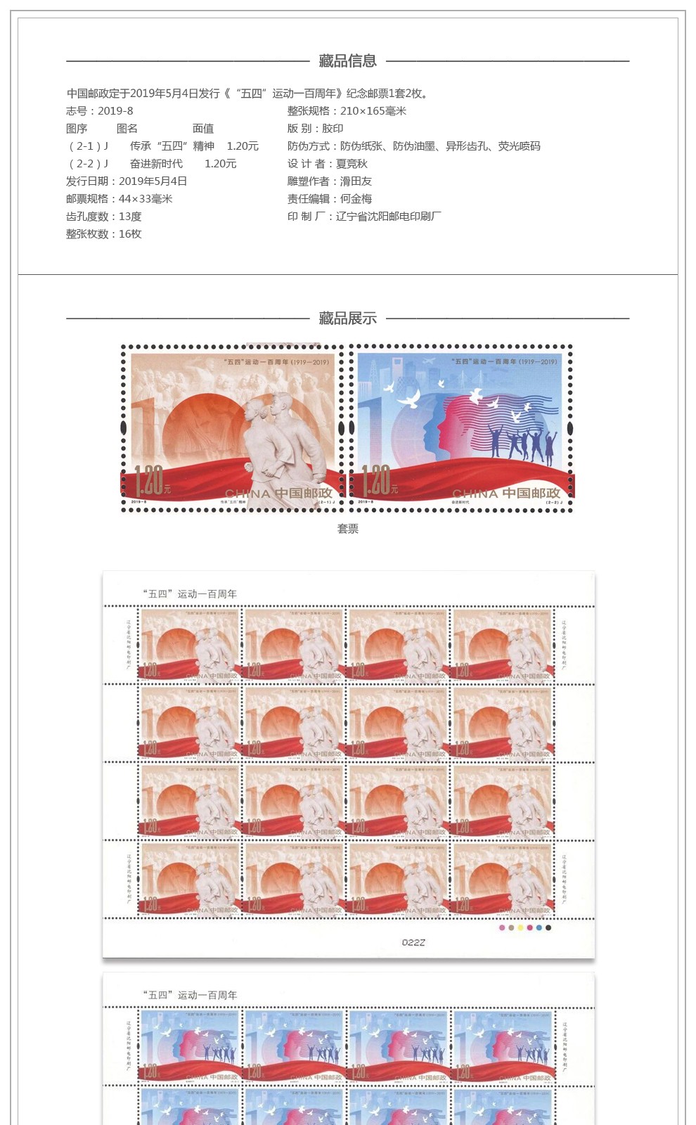 YZ-134 《五四运动一百周年》--中国集邮总公司