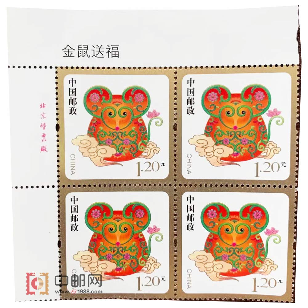 2020-贺年专用邮票《贺新禧、金鼠送福》(1枚1套))(厂铭四方连)