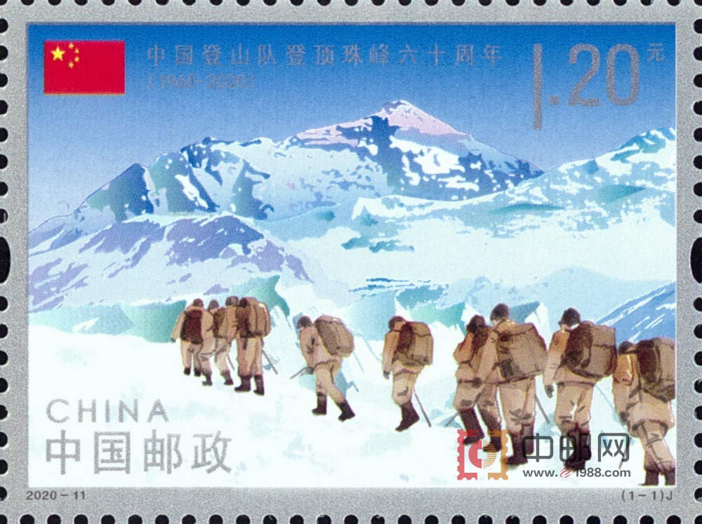 中国邮政定于2020年5月25日发行《中国登山队登顶珠峰六十周年》纪念邮票1套1枚。详情如下: