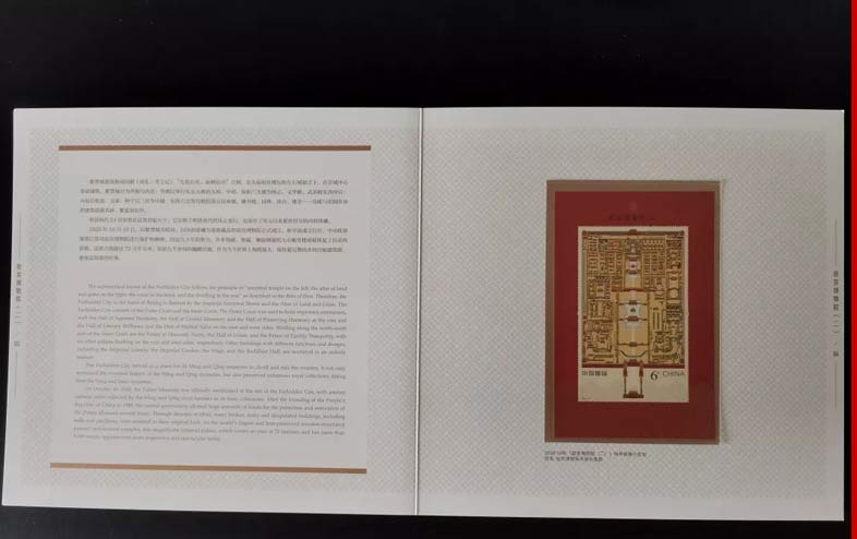 2020-16《故宫博物院二》邮票文化册,紫禁城600周年纪念珍藏,这是一本邮册,内有:故宫二大版(四版,同号)、小版、小型张、邮票首日封四枚、小型张首日封一枚、紫禁呈祥特殊工艺个性化双连张,中国集邮总公司原装正品保真。这本邮册包含了此次故宫二邮票发行的所有版式和品种,大全套,一册齐活儿。邮票设计相当不错,雕刻版,扑面而来的古朴气息,彰显紫禁城600年的日月轮转。大版为四版,每版12枚。