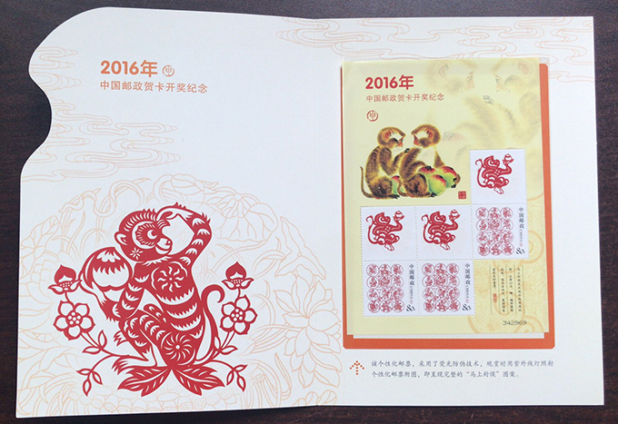 RM692 2016年中国邮政贺年有奖邮资封片卡开奖纪念邮折(2016年)