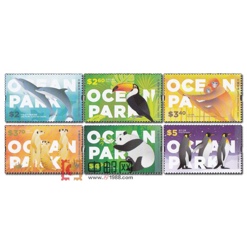 香港海洋公园植根香港四十多年,除了是无数香港人的集体回忆,更是一个世界级的海洋主题乐园,汇集娱乐、教育及保育于一体,深受本地及全球游客喜爱。海洋公园一直与时并进,不断革新设施,惊险刺激的机动游戏与亲近动物的教育活动共冶一炉,为游客创造更多元化的体验。与此同时,海洋公园在动物保育方面亦同样不遗馀力,如透过研究和教育推广尊重大自然及爱护环境的重要理念。香港邮政发行的一套六枚邮票介绍公园内其中六种动物,邮票小型张则把海洋公园呈现于眼前,洋溢欢乐的气氛。