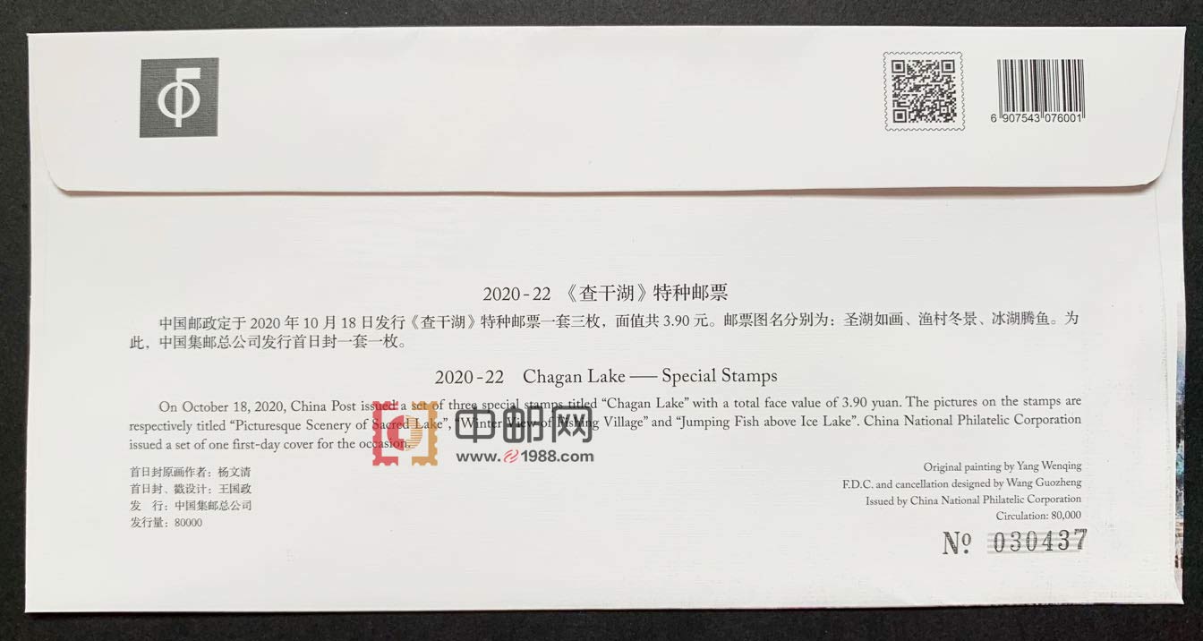 S总《2020-22 查干湖》总公司首日封