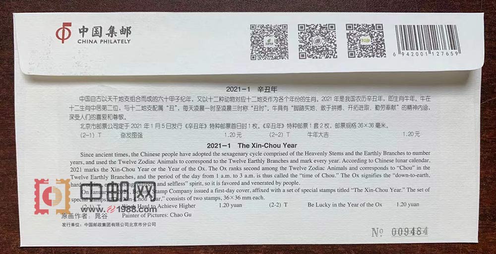 S分2021-1 辛丑年(四轮牛票)(北京市分公司首日封)