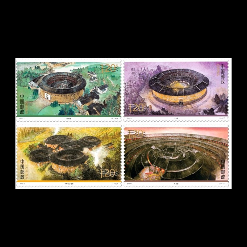 - 商品详情: 中国邮政定于2021年5月19日发行《福建土楼》特种邮票一套4枚,全套邮票面值为4.80元,邮票计划发行数量710万套,版式二计划发行数量95万版。