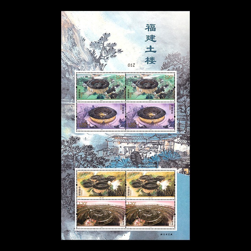 该套邮票以土楼的四季为主题,表现了振成楼、二宜楼、田螺坑土楼群、承启楼。四幅作品采用中国传统绘画工写结合的表现手法,色彩鲜明饱满,对土楼的文化内涵深入挖掘。在无限被重复的方形和圆形中,四季变化的微妙感受与天地参合的奥秘形象地表达出来,赋予土楼新的视角和色彩;光与影的变化使画面变得轻灵空旷;而高空俯视的视角则使构图体现出更富于扩张感的空间意识,演绎出与众不同的土楼造型与人文气息,突显土楼这种建筑形式承载的向心、团结的情感内蕴,同时版式一、二均饰以精美的绘画,土楼的主题跃然纸上。