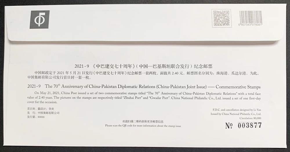 S总2021-9 中巴建交七十周年(集邮总公司首日封)