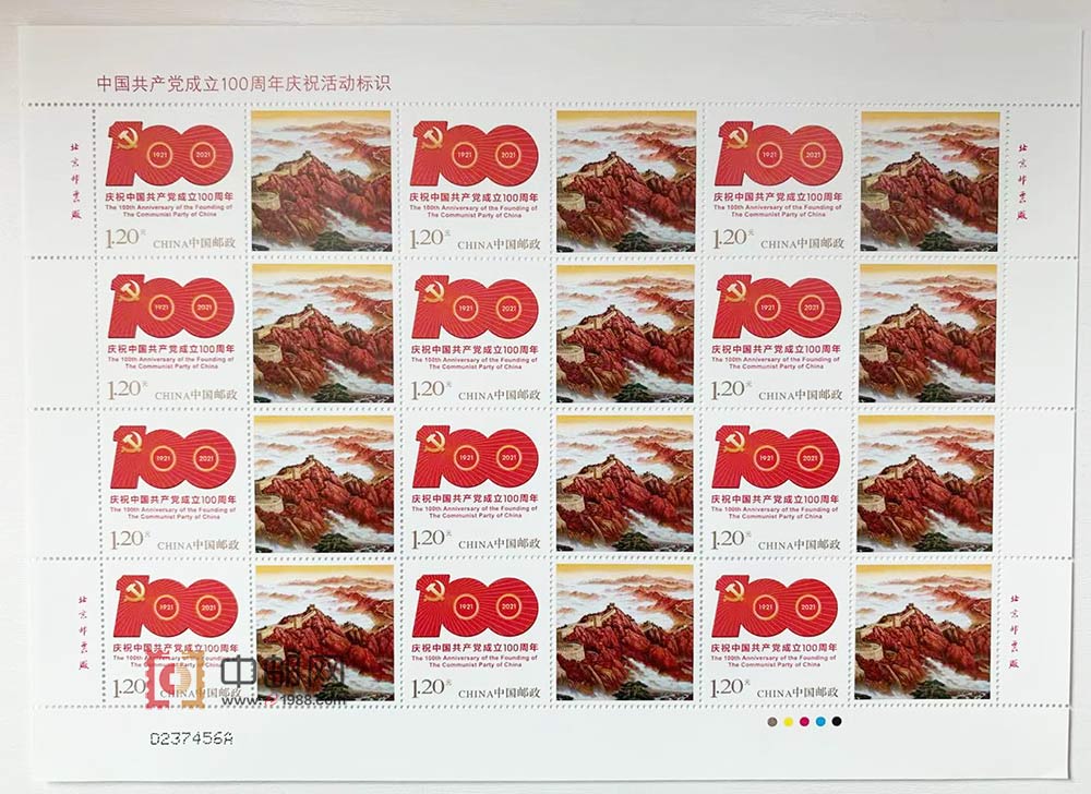 GXHB56 《中国共产党成立100周年庆祝活动标识》个性化服务专用邮票整版票