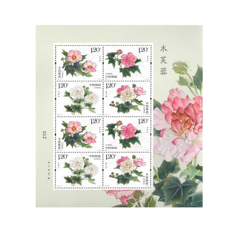 商品详情:中国邮政定于2021年9月7日发行《木芙蓉》特种邮票一套4枚,邮票图案名称分别为木芙蓉、金秋红、重瓣白、醉芙蓉。全套邮票面值4.80元。邮票计划发行套票690万套,版式二90万版。