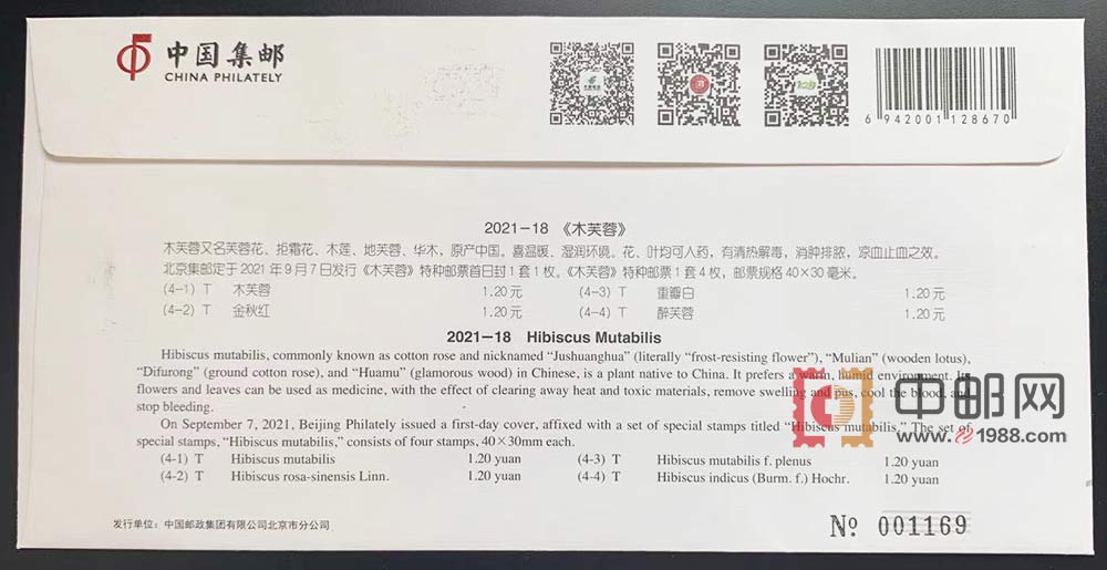 S分2021-18 木芙蓉(北京市分公司首日封)