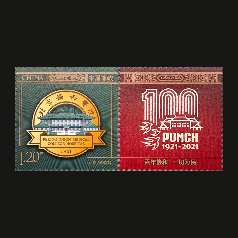 为纪念协和医院百年华诞,中国邮政发行《北京协和医院》个性化服务专用邮票主图,该套邮票也是首次专题为医疗机构发行个性化主图。