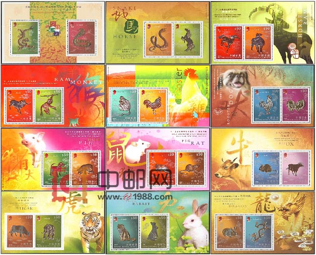 HMZH0011 香港十二生肖金银小全张带证书2001-2012年(12全)