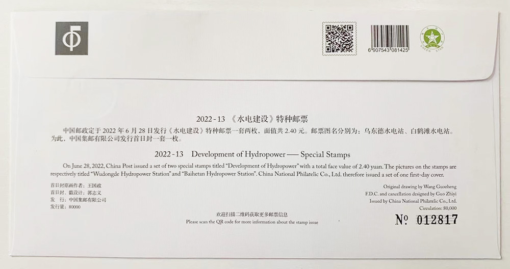 S总 2022-13《水电建设》首日封(集邮总公司)
