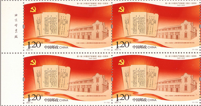 2022-14 《第一部中国共产党章程通过一百周年》(厂铭四方连)
