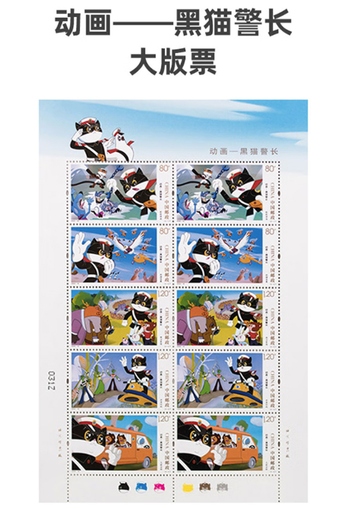- 商品详情:中国邮政定于2022年9月3日发行《动画——黑猫警长》特种邮票一套5枚,全套邮票面值5.20元。邮票计划发行数量为630万套。