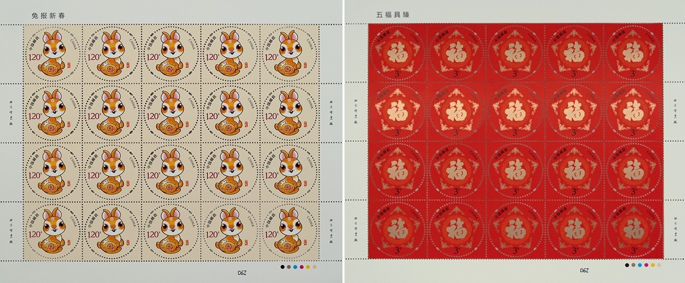 ZBP-2023-贺年专用邮票《兔报新春、五福具臻》(贺禧十七)(整版票)
