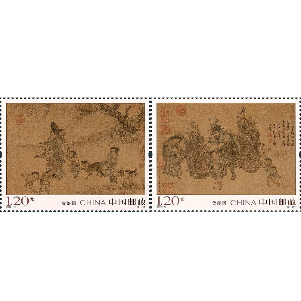 中国邮政定于2023年6月18日发行《货郎图》特种邮票1套2枚,小型张1枚。详情如下: