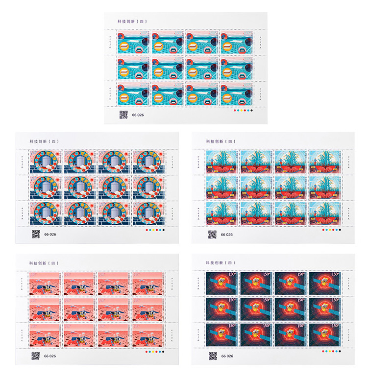- 商品详情:中国邮政定于2023年11月1日发行《科技创新(四)》纪念邮票一套5枚,邮票图案名称分别为人工合成淀粉、多年生稻、“祝融号”火星车、夸父一号、高海拔宇宙线观测站。全套邮票面值6.60元。邮票计划发行数量为700万套。