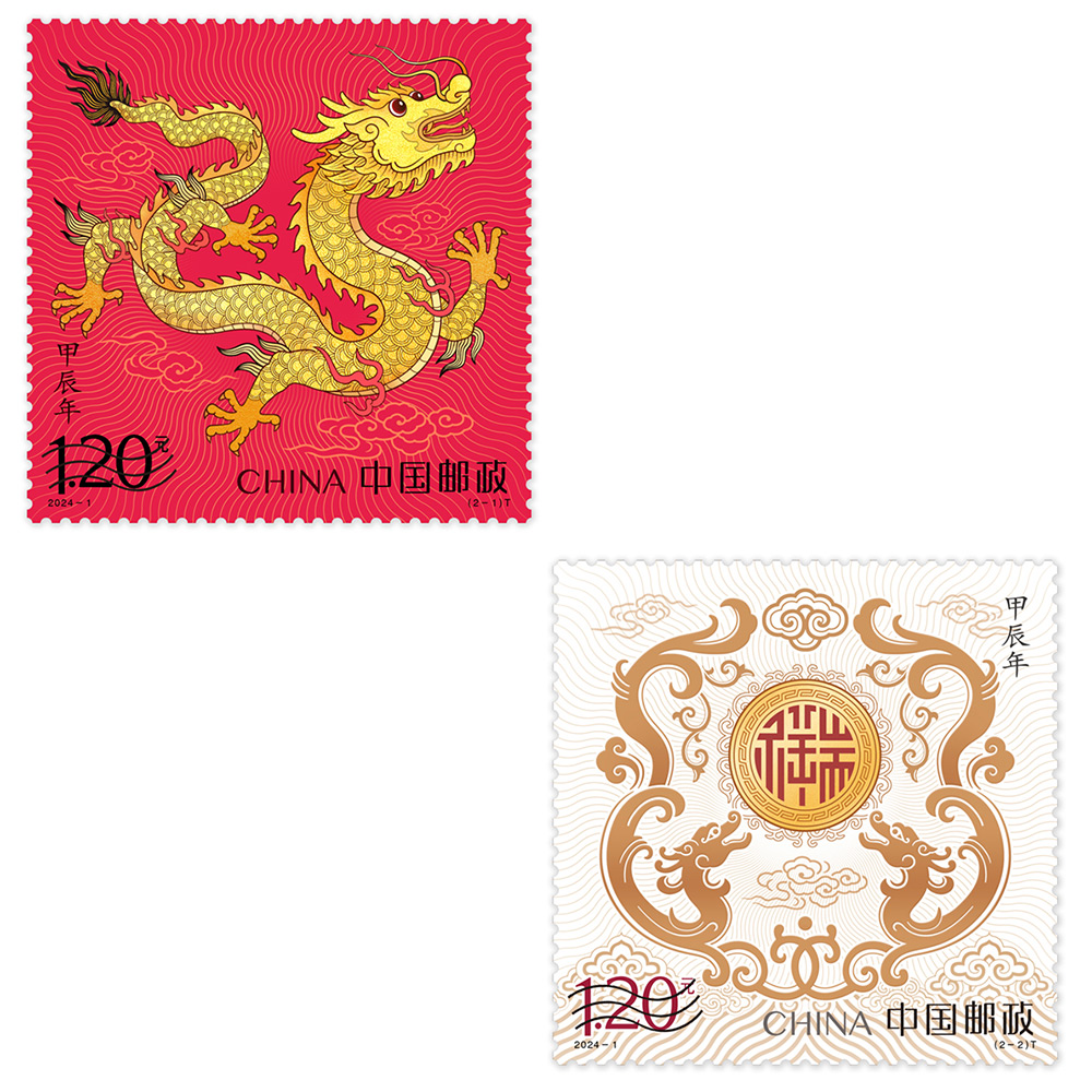 中国邮政定于2024年1月5日发行《甲辰年》特种邮票1套2枚,小本票1本。详情如下: