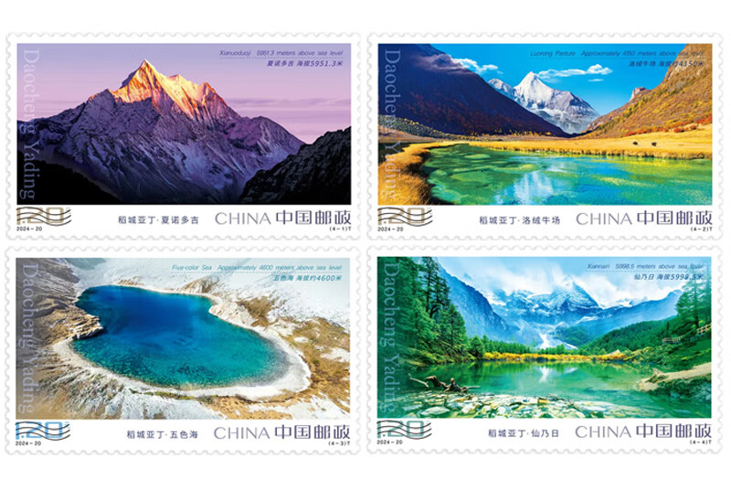 中国邮政定于2024年9月28日发行《稻城亚丁》特种邮票1套4枚,小型张1枚,邮票图案名称为夏诺多吉、洛绒牛场、五色海、仙乃日,小型张图案名称为央迈勇。全套邮票面值10.80元。邮票计划发行数量为套票600万套,小型张500万枚。