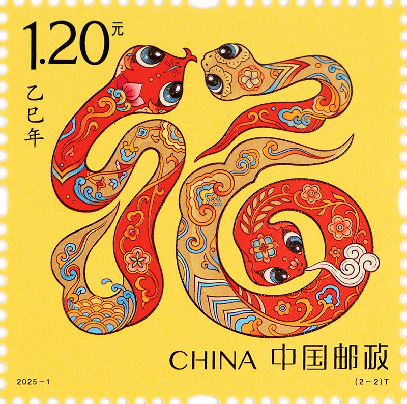 中国邮政定于2025年1月5日发行《乙巳年》特种邮票1套2枚,小本票1本。详情如下: