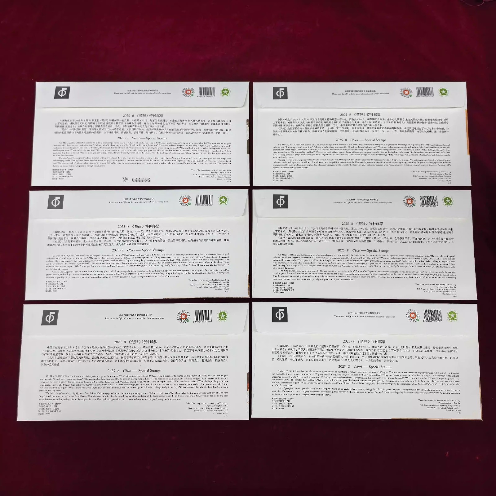 S总2025-8 楚辞首日封六枚一套(集邮总公司)
