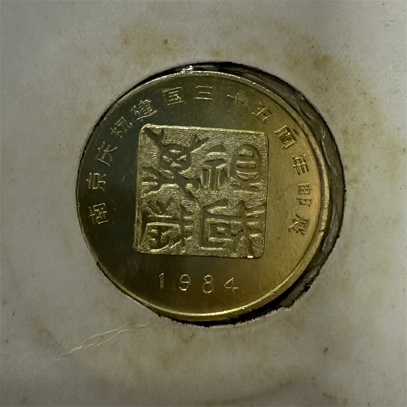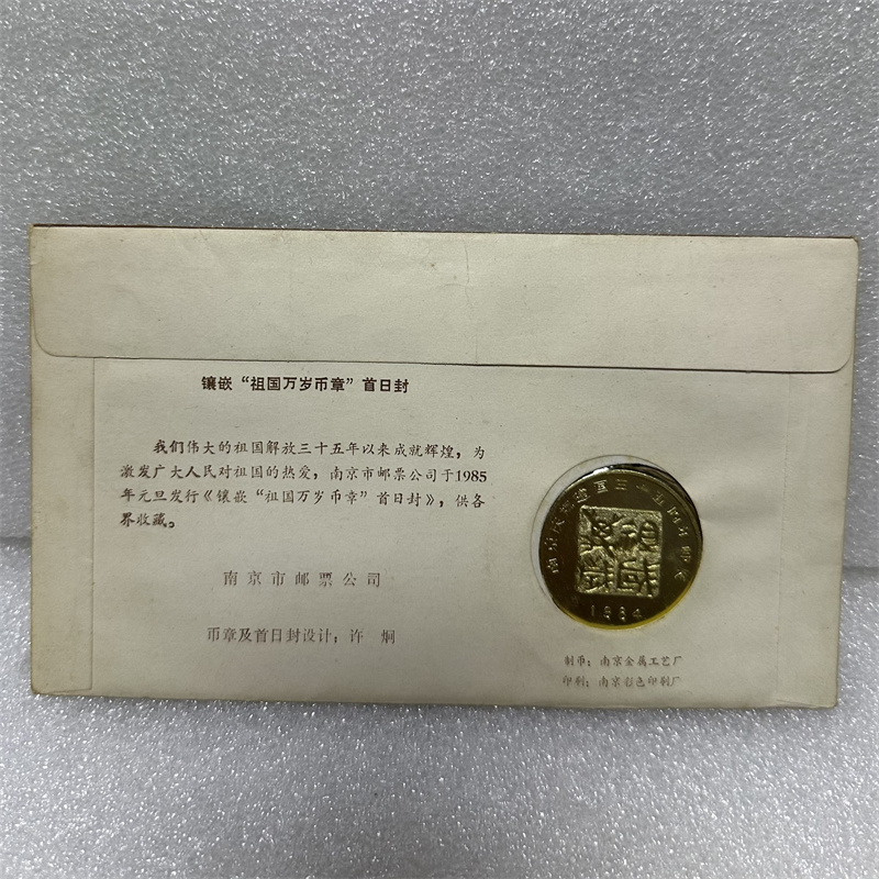 庆祝建国35周年镶嵌“祖国万岁币章”首日封 ,由南京市邮票公司发行!