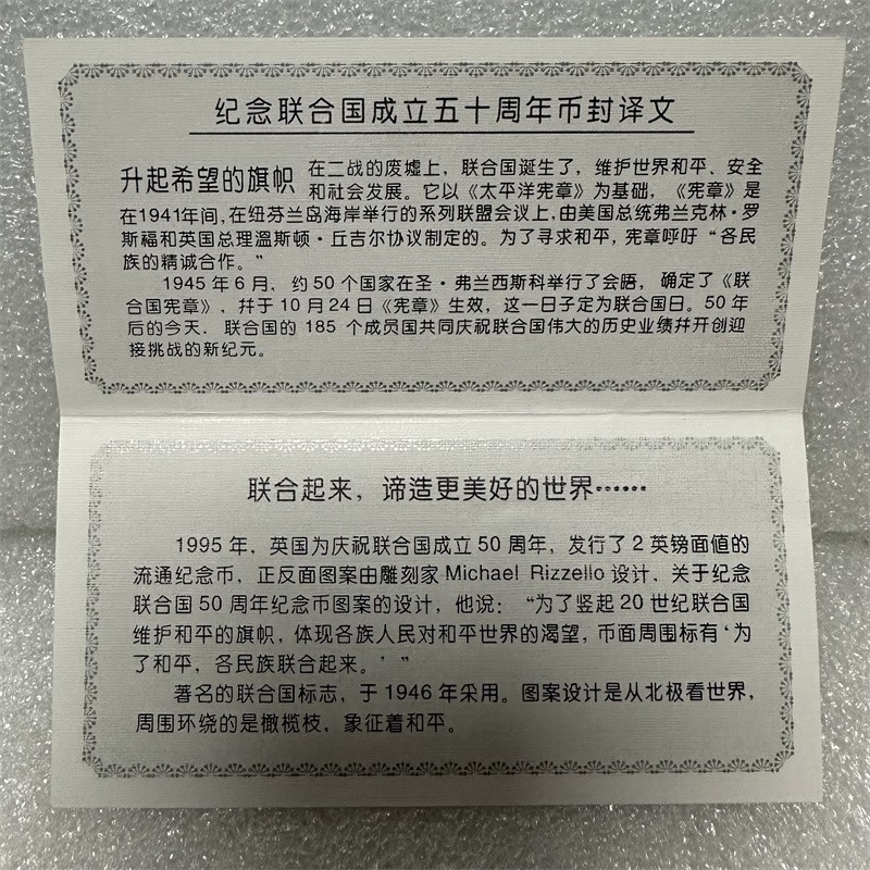 纪念联合国成立五十周年币封