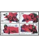 抗战时期的木刻作品,在中国现代美术史上具有重要地位。为了突出画面的战斗气氛,作者有意识地把2枚邮票设计为对称图案,加强了动感。一条红色细长的标题字贯穿票面,显得很有气势。整个票面套印浅黄色,使人沉浸在四十年前的沉重气氛之中。