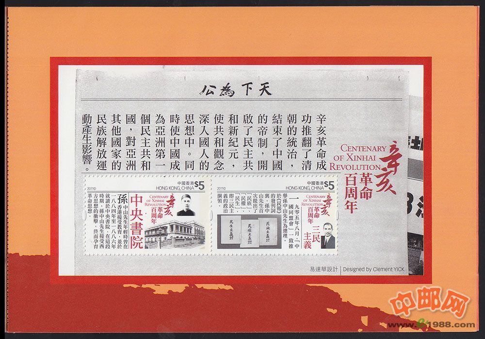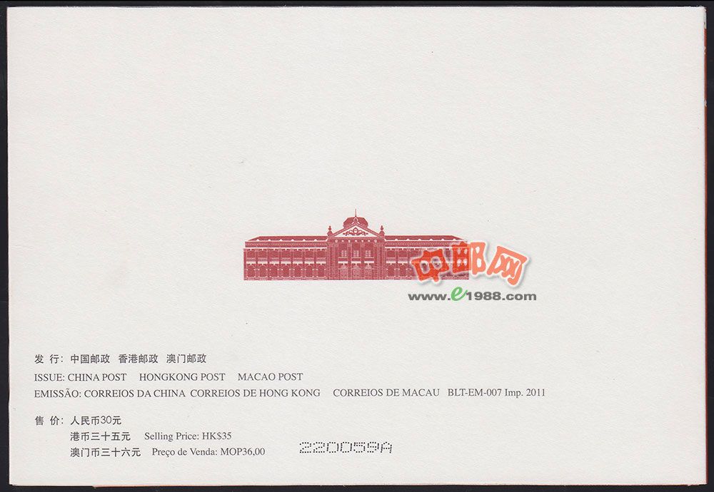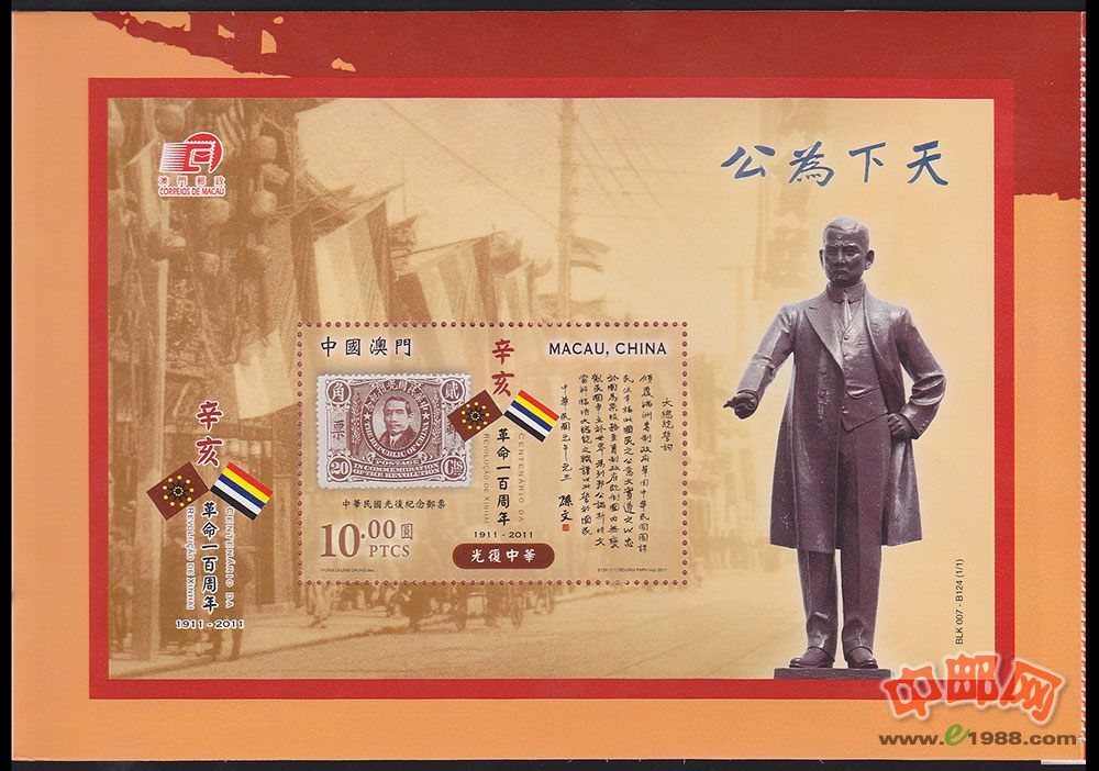 2011年10月10日,中国邮政与香港邮政、澳门邮政共同印制同题材小型张本票1本,内含中国邮政、香港邮政、澳门邮政小型张各1枚。